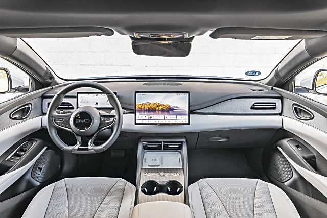 En el salpicadero, resalta una pantalla de infoentretenimiento de alta resolución que puede ser de 12,8” (32,5 cm) o 15,6” (39,6 cm), dependiendo del nivel de acabado. Gracias a dos puertos USB tipo C situados en la parte delantera (uno con una potencia de 18 W y otro de 60 W), todos los ocupantes tienen la posibilidad de mantenerse conectados y cargar sus dispositivos móviles. Además, en la parte trasera hay dos tomas adicionales tipo C de 18 W. En la mayoría de las versiones, también se ofrece una base de carga inalámbrica para smartphones con una potencia de 50 W.