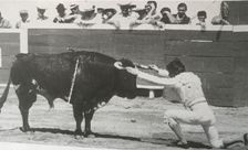 ARTILLERO.- Toro negro bragado y salpicado, número 32, de la divisa de los herederos de don Juan Pedro Domecq, antiguo hierro del duque de Veragua, corrido en Barcelona en el festejo celebrado el 14 de mayo de 1942, con el que Manuel Rodríguez (Manolete), en presencia de José Luis Vázquez, concedió la alternativa a Emiliano de la Casa (Morenito de Talavera).