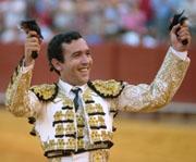 Plaza de toros de la Real Maestranza de Sevilla, 19 de junio de 2003. Se lidiaron 4 novillos de Los Bayones y dos de Murube (3º y 4º) que dieron buen juego en general. El triunfador de la tarde fue Domingo Valderrama que le cortó las dos orejas al quinto y salió a hombros por la puerta de cuadrillas. Le acompañaron en el paseíllo Marcos Sánchez Mejías y Fernández Pineda.