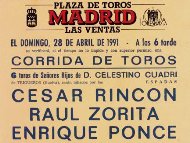Se lidiaron toros de los Hijos de Celestino Cuadri en Madrid el 28 de abril de 1991. Con el primero de la tarde, Talismán nº 7 confirmó la alternativa el torero Raúl Zorita que tuvo a César Rincón como padrino de ceremonia y a Enrique Ponce de testigo.