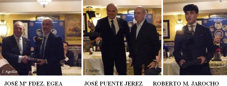 El trofeo “Bienvenida” a la torería fue entregado al escultor don José Puente Jerez, hijo del gran pintor taurino Pepe Puente; la escultura la recibió de manos del veterinario Javier Morales y contó con la intervención “espontánea y fuera de programa” de Gitanillo Rubio que recitó un poema a su buen amigo Puente Jerez con ese sentimiento que le caracteriza.