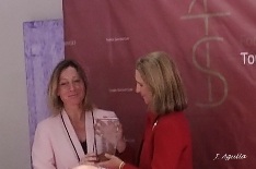 Después de las palabras de bienvenida a los asistentes que llenaron el salón principal del restaurante, Alejandra pasó a entregar sendas distinciones a S.A.R. la infanta doña Elena de Borbón que, tras recibirla, habló para los presentes dejando muy clara su afición a los toros, legado que recibió no sólo de su abuela doña María, condesa de Barcelona sino de su padre, el anterior Rey Juan Carlos I.