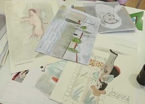 A pesar de los problemas de salud, como una neumonía que afectó sus piernas, Carlos sigue pintando. Su técnica preferida es la acuarela, usando solo este medio porque lo considera una vía hacia la libertad. Sus obras están llenas de colores brillantes y representan paisajes, retratos y figuras humanas, inspiradas en sus recuerdos y en la historia. Carlos menciona que usa el reverso de las hojas cuando se queda sin papel, lo que refleja su compromiso con el arte.